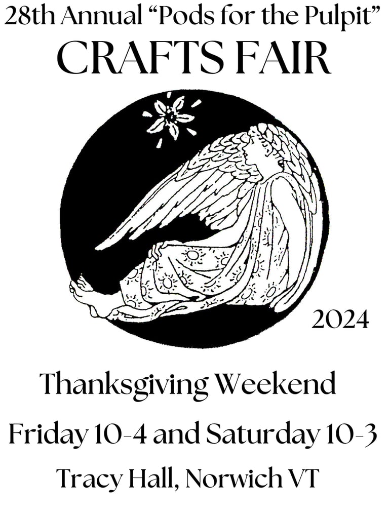 Remember: Pods for the Pulpit Crafts Fair, November 29-30, 2024, at Tracy Hall in Norwich, VT. Mark your calendars and spread the word!
